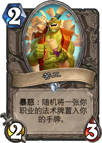 效果:暴怒——隨機將一張你職業的法術牌置入你的手牌