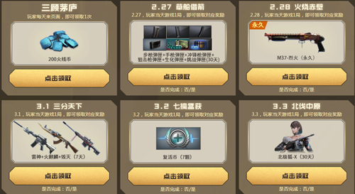 玩家完成任務(wù)達(dá)到指定數(shù)字,即可領(lǐng)取對應(yīng)獎勵(三顧茅廬除外)