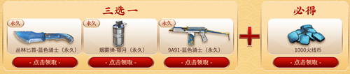 叢林匕首-藍色騎士(永久)、煙霧彈-銀月(永久)、9A91-藍色騎士(永久)等