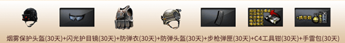 煙霧保護頭盔(30天)、防彈衣(30天)、防彈頭盔(30天)等