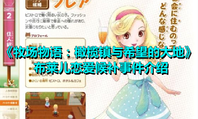 在《牧場物語:橄欖鎮與希望的大地》這款牧場模擬經營游戲中,有著許多女性可以觸發戀愛事件,下面則是小編為大家帶來的《牧場物語:橄欖鎮與希望的大地》布萊兒戀愛候補事件介紹,感興趣的小伙伴可以看一下。