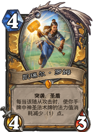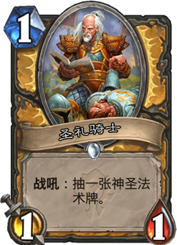 效果:突襲;圣盾;每當該隨從攻擊時,使你手牌中神圣法術牌的法力值消耗減少1點