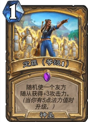 效果:隨機使一個友方隨從獲得+3攻擊力(當你有5點法力值時升級)