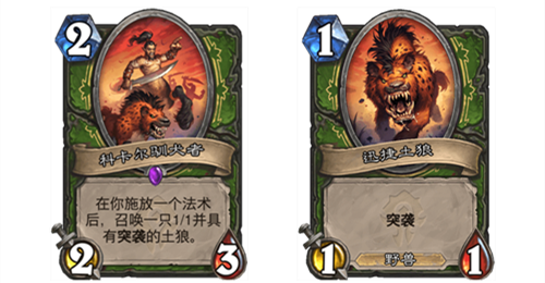 效果:在你施放一個法術后,召喚一只1/1并具有突襲的土狼