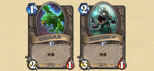 你也許注意到了,基本卡牌和全新卡牌的數量較上次公布時有了變動。因為我們考慮了玩家社區的反饋意見,決定將之前在核心系列中公布的石牙野豬和藍鰓戰士替換為兩個全新的隨從——翡翠天爪梟和紅鰓鋒顎戰士!