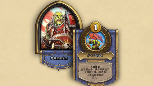 為了部落![消耗1枚鑄幣]——在本回合中,使你購買的下一個隨從獲得+1攻擊力。(每回合都會升級!)