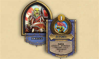 英雄技能:為了部落[1費(fèi)]——在本回合中,使你購買的下一個(gè)隨從獲得+1攻擊力(每回合都會(huì)升級(jí)!)