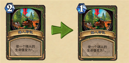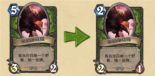 舊:[消耗5點法力值]3點攻擊力,2點生命值 → 新:[消耗2點法力值]2點攻擊力,1點生命值