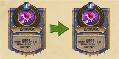 舊:檢視你手牌里最多四張牌,將其中一張棄掉。然后抽一張牌。→ 新:檢視你手牌里最多三張牌,將其中一張棄掉。然后抽一張牌。