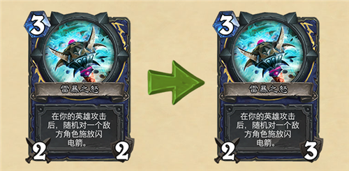 舊:2點攻擊力,2點耐久度。→ 新:2點攻擊力,3點耐久度。