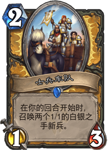 效果:在你的回合開始時,召喚兩個1/1的白銀之手新兵