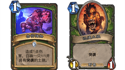 效果:造成1點(diǎn)傷害。召喚一只1/1并具有突襲的土狼