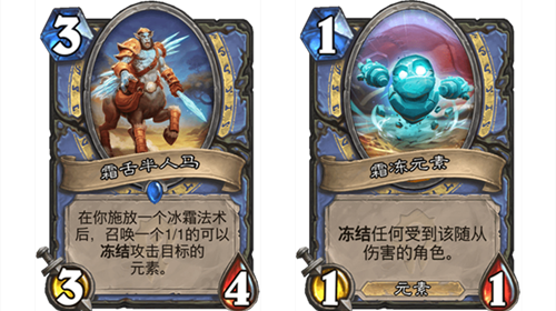 效果:在你施放一個冰霜法術后,召喚一個1/1的可以凍結攻擊目標的元素