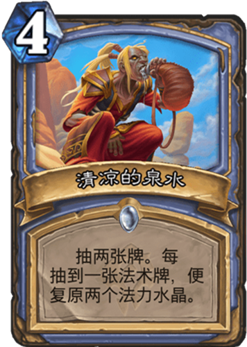 隨著爐石傳說新版本貧瘠之地的錘煉即將上線,官方也公布了新版本中的一些新卡牌,這些卡牌或許會給天梯冒險(xiǎn)注入新的活力與新的對局。下面小編就來介紹一下貧瘠之地的錘煉法師新卡清涼的泉水介紹的效果