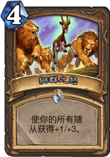 隨著爐石傳說新版本貧瘠之地的錘煉即將上線,官方也公布了新版本中的一些新卡牌,這些卡牌或許會給天梯冒險注入新的活力與新的對局。下面小編就來介紹一下貧瘠之地的錘煉德魯伊新卡獅群之怒的效果