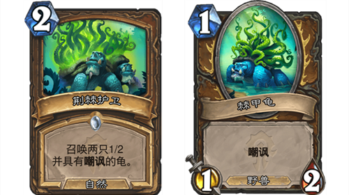 隨著爐石傳說新版本貧瘠之地的錘煉即將上線,官方也公布了新版本中的一些新卡牌,這些卡牌或許會給天梯冒險注入新的活力與新的對局。下面小編就來介紹一下貧瘠之地的錘煉德魯伊新卡荊棘護衛的效果