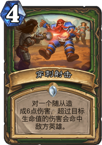 隨著爐石傳說新版本貧瘠之地的錘煉即將上線,官方也公布了新版本中的一些新卡牌,這些卡牌或許會給天梯冒險注入新的活力與新的對局。下面小編就來介紹一下貧瘠之地的錘煉獵人新卡穿刺射擊的效果