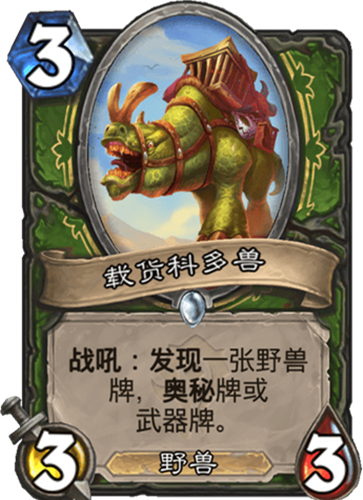 效果:戰吼——發現一張野獸牌,奧秘牌或武器牌
