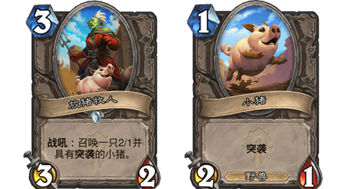 效果:戰(zhàn)吼——召喚一只2/1并具有突襲的小豬