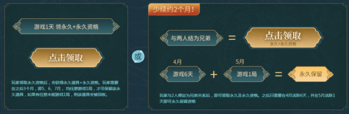指定時間游戲一局即可領取永久,與玩家結拜更可縮短續約時間