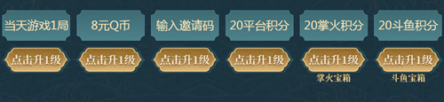 通過付費渠道購買升級則無限制。(4月3日~4月7日)玩家還可以通過完成斗魚,掌火任務,獲取專屬積分,領取專享獎勵。(龍宮寶藏、斗魚寶藏、掌火寶藏等級不互通。)