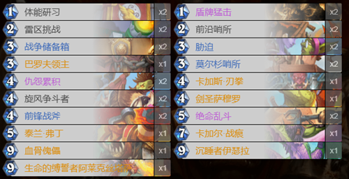 爐石傳說新版本“貧瘠之地的錘煉”正式上線了,各路全新卡組層出不窮,雖然大部分都是在原由的基礎上改進的卡組,大師也有不少的全新打法的卡組,下面就為大家介紹一套防戰的卡組