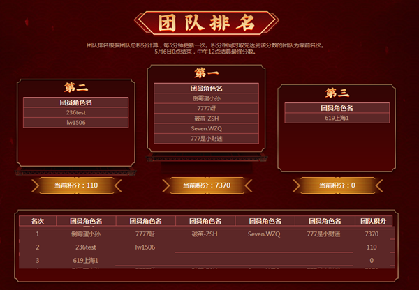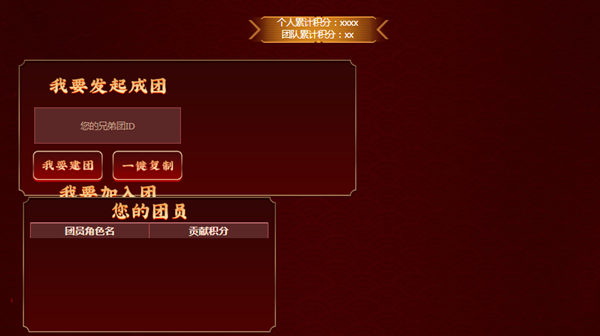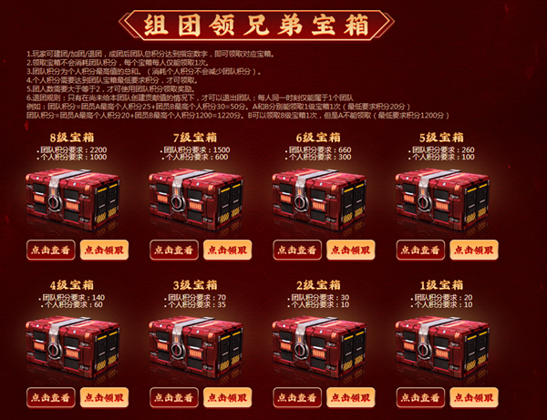 6、玩家可建團或者加團或者退團,每個團隊最多5人,成團后團隊總積分達到指定數值,且個人積分達到指定數值即可領取對應寶箱。領取寶箱不會消耗團隊積分,每個寶箱每人僅能領取1次。團隊積分為個人積分的累計值。(消耗個人積分不會減少團隊積分)。