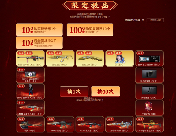 2、購買:10幣購買復活幣1個并贈送1把鑰匙,100Q幣購買復活幣10個并贈送11把鑰匙;擁有代金券的玩家,可以使用代金券抵扣購買復活幣并贈送鑰匙,一次最多抵扣9個代金券,一旦代金券使用后無法退還(下單后未支付,訂單被系統取消之后或手動取消之后會返還抵扣的代金券);
