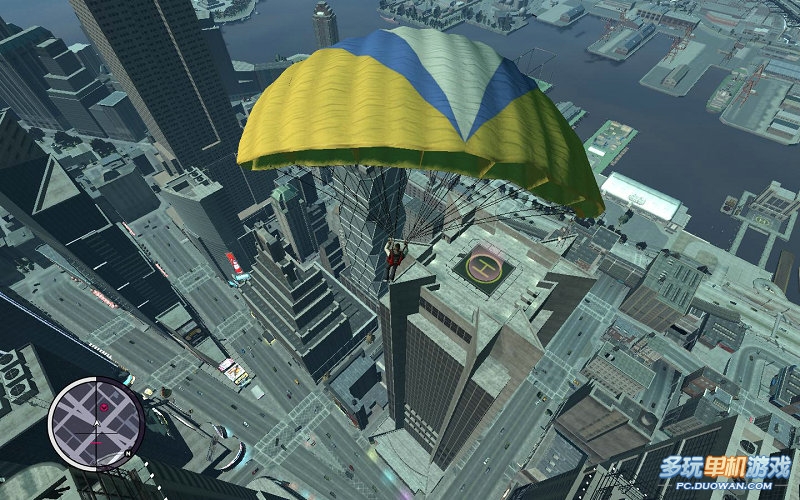 然后穿上降落傘安全跳傘到地面即可,注意別撞到附加的大樓了