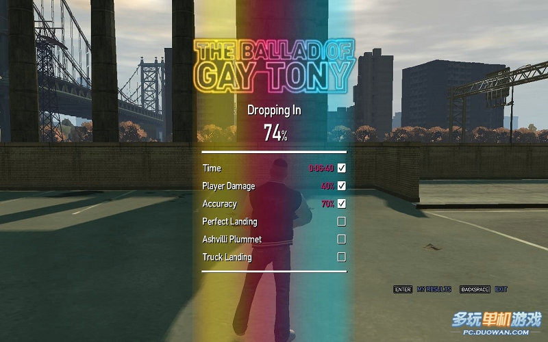 這個(gè)任務(wù)要求如下第一,完成時(shí)間在6分40秒;第二,玩家受傷值在40%之內(nèi),第三命中率要高于70%;第四,跳傘降落到平臺(tái)的時(shí)候要準(zhǔn)確降落到升降平臺(tái);第五,從大樓跳傘逃出的時(shí)候,要垂直下落,第六就是準(zhǔn)備的下落到卡車(chē)的后面裝貨平臺(tái)。難度都不小,都是考驗(yàn)?zāi)愕奶鴤慵夹g(shù)的