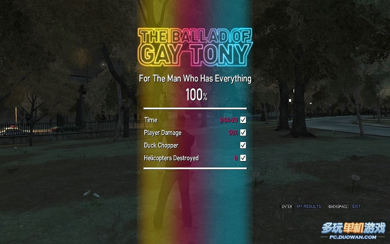 這個(gè)任務(wù)很容易到100%第一時(shí)間在4分20秒呢;第二受傷值在50%之內(nèi);第三成功躲避直升飛機(jī)(也就是剛才趴到躲避飛機(jī)的時(shí)刻);第四,至少摧毀8輛直升飛機(jī)