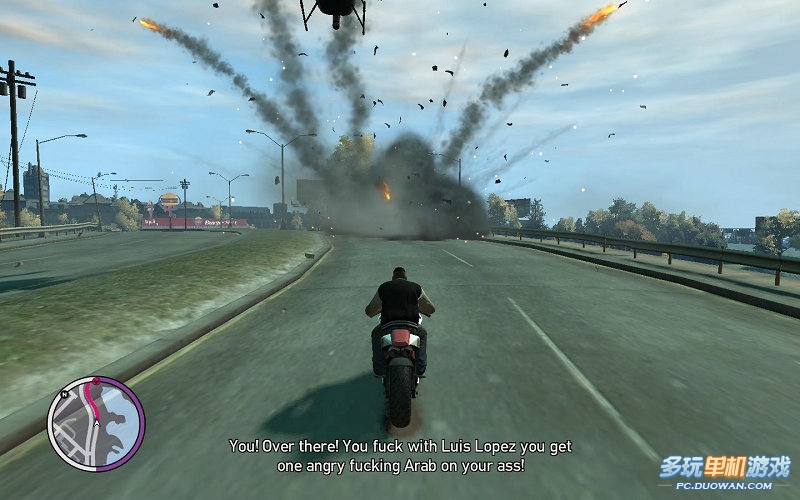 清理掉這里的敵人,得知B老大馬上就回帶著鉆石坐飛機(jī)離開(kāi)這里,速速騎上摩托車(chē)趕往機(jī)場(chǎng)。半路回接到Y(jié)USURF的電話(huà);他會(huì)主動(dòng)駕駛者武裝直升飛機(jī),來(lái)幫助你清掃后面追擊你的敵人