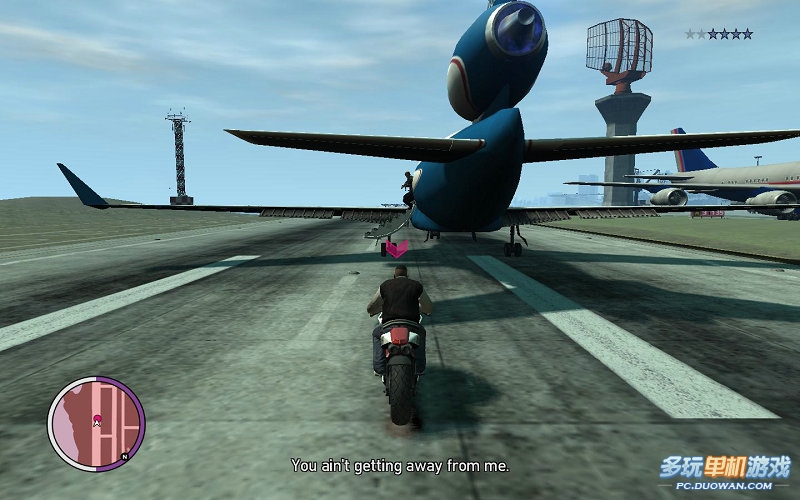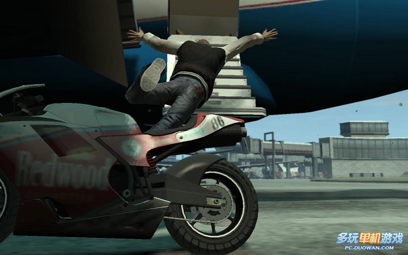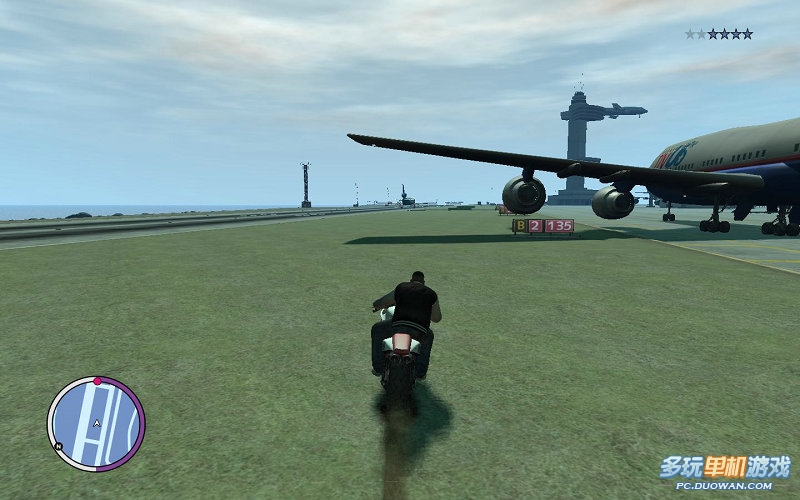 進(jìn)入機(jī)場(chǎng),發(fā)現(xiàn)B老大的飛機(jī)馬上就要離開(kāi)跑道了;全速前進(jìn);放心,你的摩托完全可以趕上他的飛機(jī)