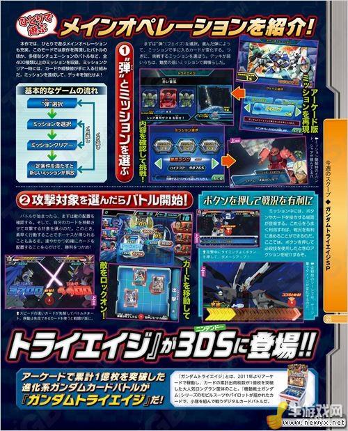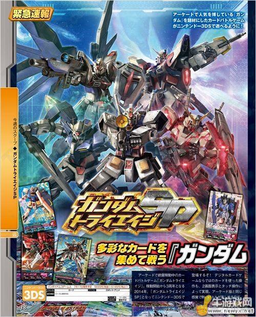 在街機(jī)上投放的卡牌戰(zhàn)斗游戲《高達(dá)卡牌世紀(jì)》在2014年迎來三周年紀(jì)念之際登陸3DS平臺(tái),作品名為《高達(dá)卡牌世紀(jì)SP》。使用卡牌的操作也通過雙屏和點(diǎn)擊操作實(shí)現(xiàn),可以展開和街機(jī)版同樣的熱力戰(zhàn)斗。