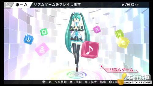 游戲主界面依舊由人物和選單組成,與F1不同的是,人物采用了全息圖的方式呈現,通過搖桿可以旋轉,而選單則是環繞人物排列。視覺效果比《歌姬計劃F》要現代化,很有時尚感。但是除此之外沒有其他的界面變化,少了一些新鮮感。
