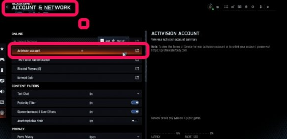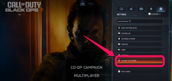 輕點屏幕右上角的齒輪圖標,開啟設置側邊欄,接著進入“賬戶與網絡”菜單,從中挑選“動視賬戶”選項。