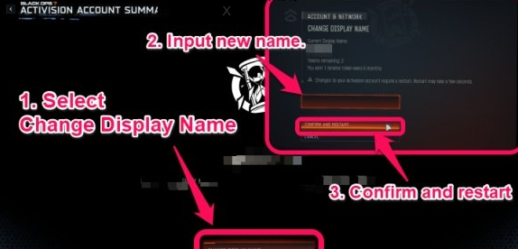 請注意修改顯示名稱或動視賬戶信息后需要重啟游戲才能生效。