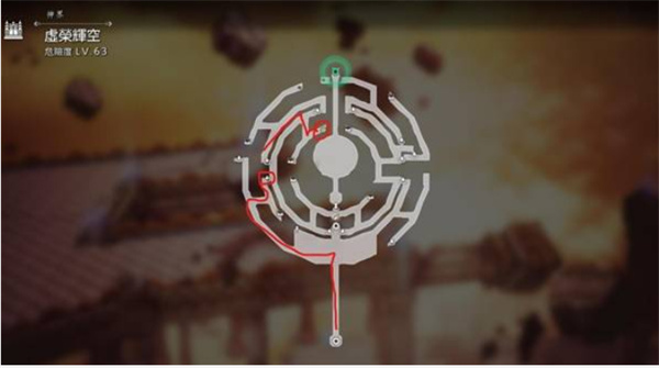 1、推動劇情進入【虛榮輝空】區(qū)域,按照下圖中的紅色路線行進,沿著主路向上前往第二層。