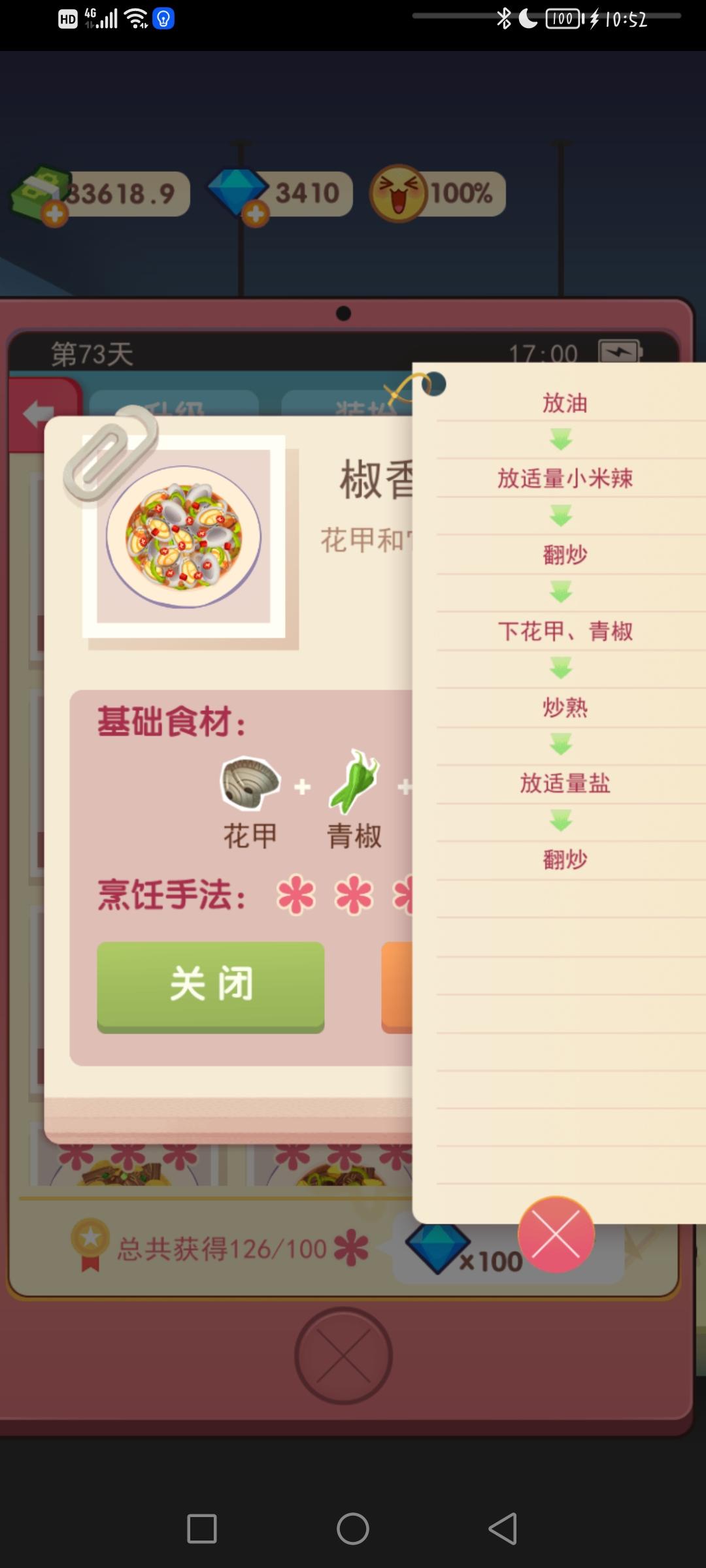 8、學海無涯:小米辣 蒜蓉→鹽→豆腐 黃瓜→炒熟→鹽→翻炒→蔥(注:做之前把自動加調料關掉,分兩次放鹽,不然只有二星)