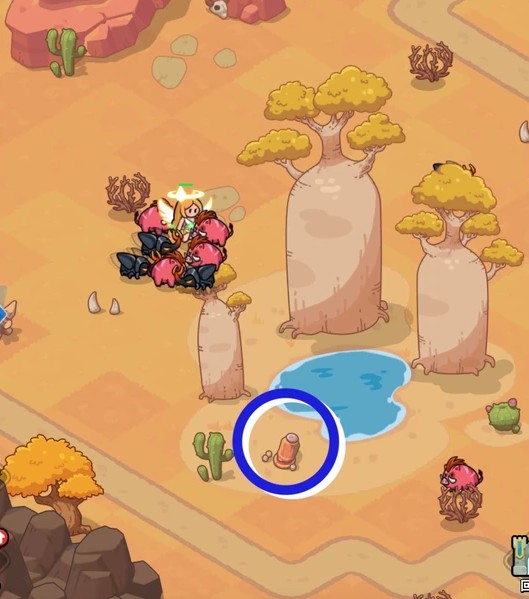 從污染哨站傳送點(diǎn)出發(fā),徑直前行抵達(dá)沙漠中心的山體,目標(biāo)位置在猴面包樹旁。