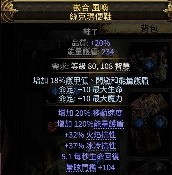 鞋子選擇純盾鞋,配合天賦鋼鐵拖鞋,護盾越高,護甲越高。