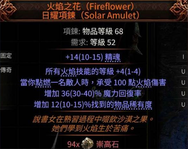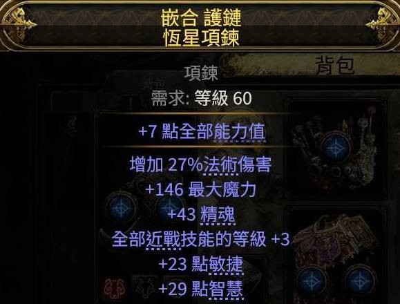 金色項鏈前綴選擇,法術傷害,精魂,護甲提高或者能量護盾提高。