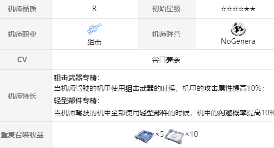 今天為大家整理的是《重裝戰姬》的R機師姬拉,她是在世界各地都有門路的黑市商人,是一個狙擊機師。她有一個合作愉快的技能,可以召喚激光機器人。那么她具體的技能屬性是怎么樣的呢?一起來看看吧!