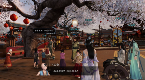 2、酒足飯飽之后,玩家將于與唐青團、趙莞兒攜手共游開封,欣賞開封年味。