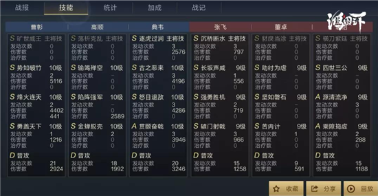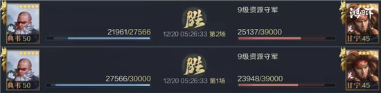 這里以9級地作為測試,第一場僅損失4000兵力便取得了勝利。從戰(zhàn)報(bào)統(tǒng)計(jì)可以看出,典韋與曹彰兩個(gè)輸出核心都造成了巨額傷害。由此可以看出步兵輸出隊(duì)的可行性是非常高的。該隊(duì)伍更適合于中期交戰(zhàn),當(dāng)然用于打地也有不錯(cuò)的強(qiáng)度,可以穿9。